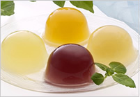 岡山県産の清水白桃、マスカット、ニューピオーネ、黄金桃のフルーツゼリー